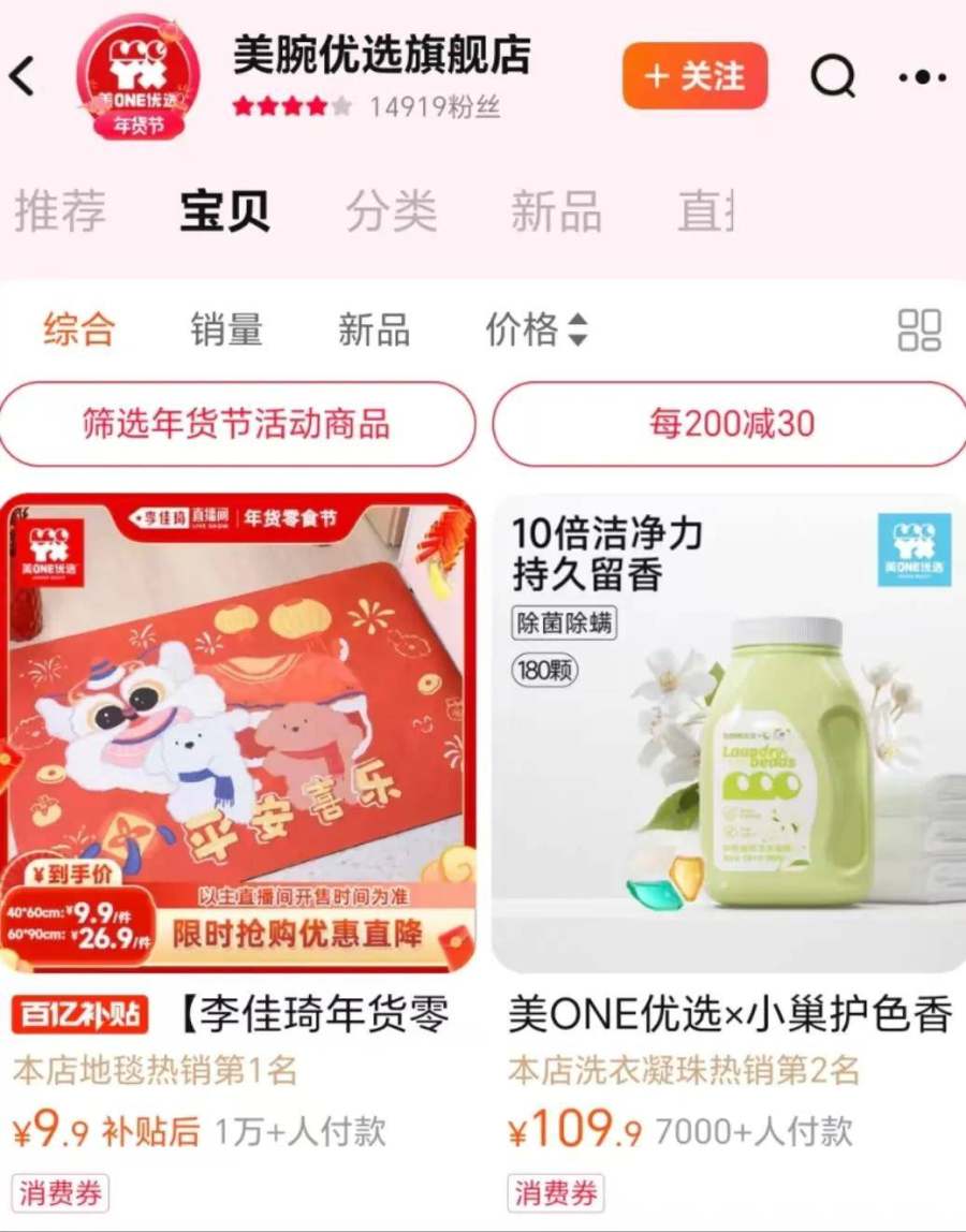 逐渐淡出直播间的李佳琦开始“披荆斩棘”勇闯娱乐圈,将更多精力倾斜在机构化运营上,去年618期间,“美ONE优选”天猫旗舰店正式上线,推出洗衣凝珠、乳胶被、硅胶凉席等自营产品。