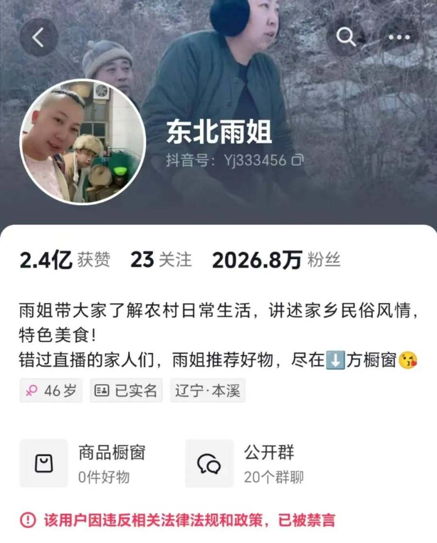 同样带货翻车的还有,因“红薯粉里没有红薯”被罚款165万元停业整顿的千万级带货主播东北雨姐。被封禁后,东北雨姐曾多次尝试小号开播,接连开通了“东北农村生活”“东北花棉袄”等尝试复播,但均被网友迅速举报封号。年末,另一位千万级带货主播“麦琪啦”因营销富婆人设,自称一周带货26亿,将保健品吹成可治恶性肿瘤的神药,被平台封禁。