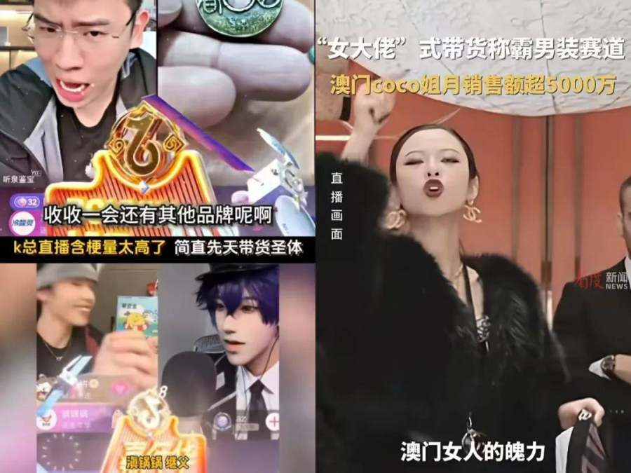 将直播间布置的像奢侈品线下专柜,请来外国男模站台,身穿奢侈品牌,言行举止霸气十足酷似女大佬的“澳门COCO姐”,横扫男装带货赛道,创造了单月销售额破5000万的惊人成绩。在直播间营造出了霸道女总裁人设后,又接着带货两位数单品,澳门COCO姐给足了直播间兄弟们尊重。又如,直播间上演“云南恋综”的有金夫妇,去年年底月内带货达到750万-1000万。