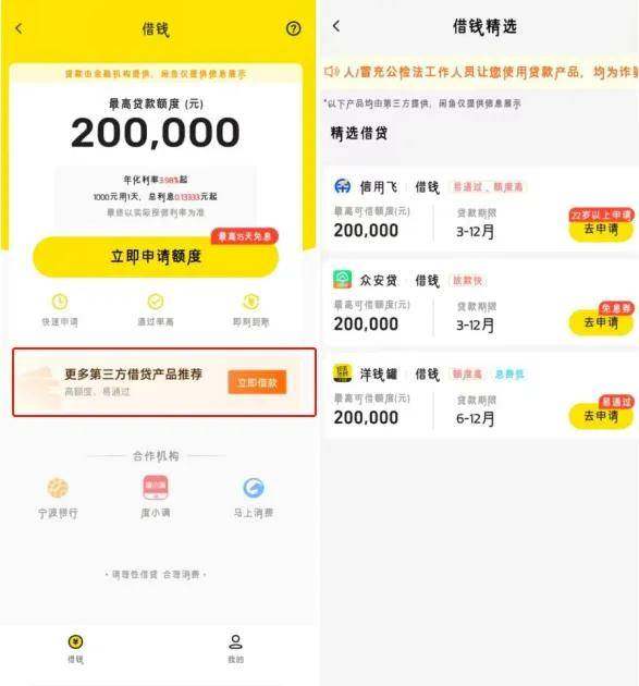 柒财经获悉,与大部分“国民”App加码金融的路径相似,闲鱼“借钱”采用纯导流的助贷形式,即贷款由第三方金融机构供给,其只负责引流和采集身份信息等,风险系数较低。