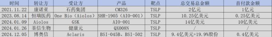 和铂医药与Windward Bio的交易,再次让TSLP靶点成为行业关注的焦点,也让TSLP靶点的热度延续至2025年。