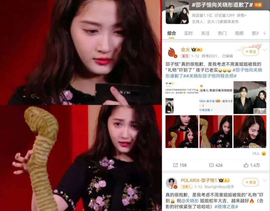 此外,对于一众参与的明星艺人而言,热搜话题也是提升新人和上升期艺人关注度、展示更多面明星形象、获得更多工作机会和大众好感度的重要武器。典型例如刚出道不久的邵子恒,在赠礼环节,他准备的蛇形玩偶将本身就怕蛇的关晓彤吓成了“关小怂”,关晓彤一句“邵子恒我记住你了”,让这位新人意外出圈;还有TOP登录少年呈现的唱跳舞台《love is dangerous》,成为不少追星人心中的“微博之夜名场面”,广受好评。