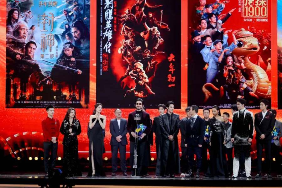 以获得微博最受期待春节档电影的五个项目为例,《哪吒之魔童闹海》《封神第二部:战火西岐》《射雕英雄传:侠之大者》《唐探1900》《熊出没·重启未来》五个剧组主创伴随各项目预告片依次登台演绎,共同汇聚成了群雄出没、百花齐放的春节档预热舞台。
