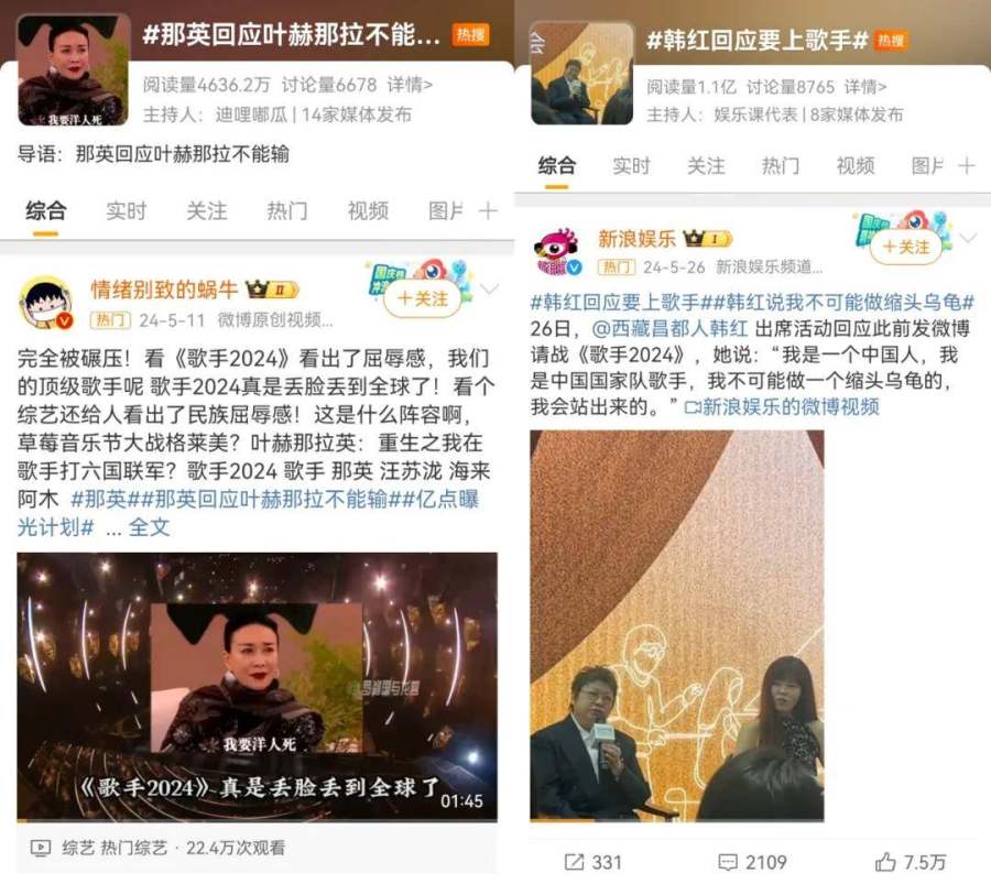 据她介绍,这种将分散型创意聚合产生的影响力,甚至可以直接扭转一个项目的成败。典型例如今年的综艺市场,大热的《歌手2024》,就经历了从不被看好到热度爆炸的曲线,这一过程也与“五旬老太守国门”“叶赫那拉不能输”等热搜爆梗密不可分。同理,综艺《再见爱人》从过去的婚恋圈层内容到本季直接成为国民级大爆综艺,也和高频的热搜话题、公域场中经典片段的展示和舆论场热烈的探讨息息相关。
