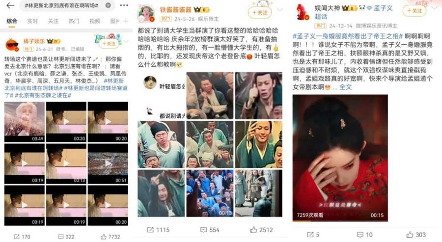 显然,此时,越是能链接用户与艺人、越是能鼓励观众参与传播、越是能诞生优质解读内容的平台,越能获得娱乐消费者的喜爱。对一众平台而言,摒弃纷杂流量,向作品回归,既符合行业生态变化,也是顺应用户需求的必然选择。以宣发重要阵地微博为例,近年来,大量用户二创、社交场热梗、剧情角色解读成为热搜常客。