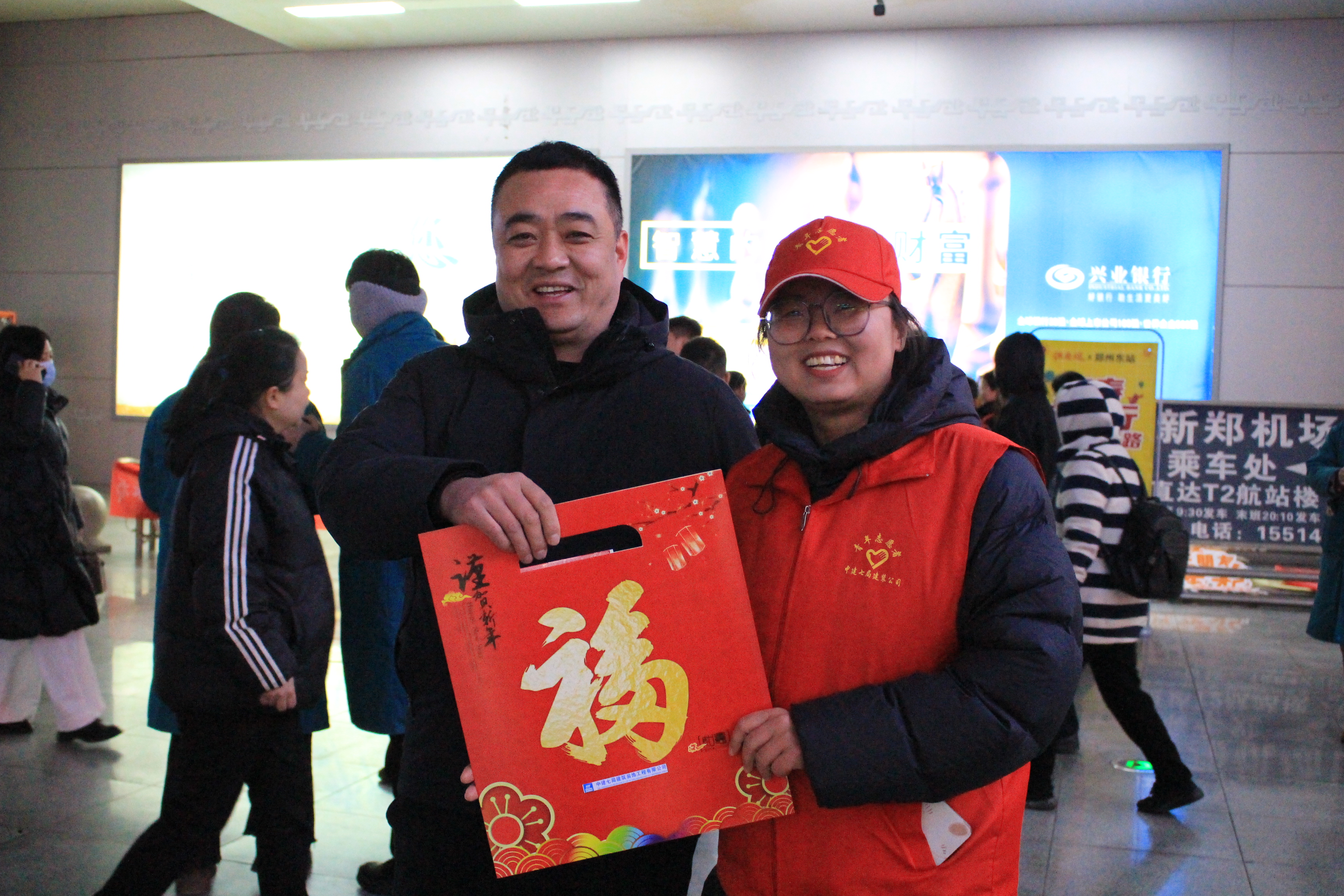 郑东新区团工委结合春运场景的新特点、新变化、新需求,对志愿者进行培训,并精准设置服务岗位。活动现场,身着统一标识的青年志愿者在进出站口、候车厅、电梯口、转驳换乘处等点位,开展咨询引导、秩序维护、站车文明宣传等志愿服务。同时,志愿者们现场手写春联,为过往旅客送上新春祝福,并发放中国结、台历、手套、暖宝贴、姜茶、中药包等冬日“暖心物资”。爱心企业现场送面,暖胃更暖心,让每一位旅客都能在寒冷冬日感受到贴心关怀。此外,利用郑州东站人流量大的特点,开展法律知识咨询和反电信网络诈骗宣传,切实守护好群众的“钱袋子”。