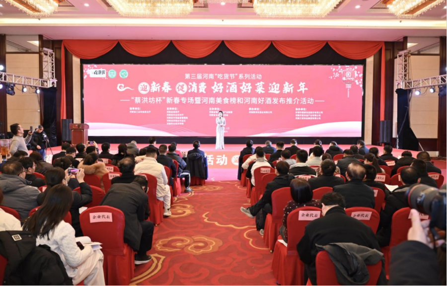 1月 13 日,第三届河南“吃货节”系列活动“蔡洪坊杯”新春专场暨河南美食榜和河南好酒发布推介活动在郑州市举行。本次活动主题为“迎新春·促消费 好酒好菜迎新年”,旨在推出一批面向全国市场叫得响、质量高、具有显著特色风味和创新性强的河南好酒好菜,提升消费市场活力,引领消费新风尚,为广大消费者营造欢乐、祥和、繁荣的节日氛围。