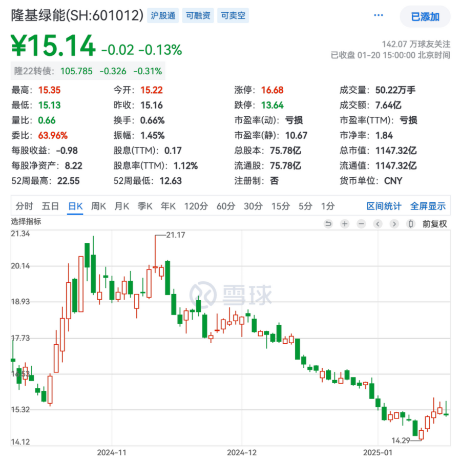 1月16日,隆基绿能发布2024年度业绩预告,预期全年归属于上市公司股东的净亏损为