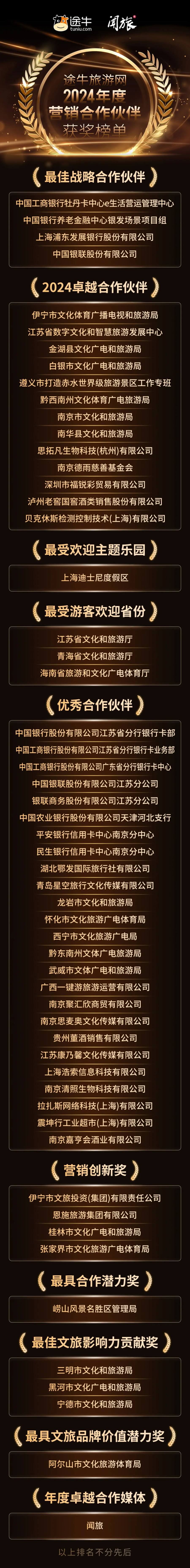 途牛联合闻旅颁布2024年度营销合作伙伴奖项