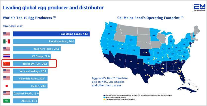 这家公司成立于1967年,总部位于密西西比州杰克逊,主要从事蛋鸡饲养和鸡蛋生产销售,旗下农场遍布美国多个州。经过了二十多年的运营,于1996年12月在纳斯达克上市,是一家典型的美式家族控股企业。 它是美国最大的带壳鸡蛋生产商和销售商,占有约16.8%的市场份额。