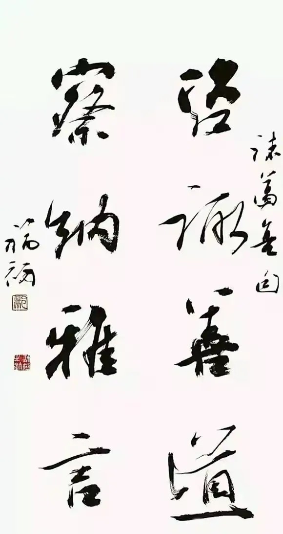 艺术的力量并非使人刚强,恰恰是击中人心柔软处或让人心葆有柔软。书法线质的刚劲有力虽不易达到,却仍然只是一个较低的层次。王羲之、智永的字好就好在柔软,如三月的熏风,让你感受到“新”,感受到自在、复苏、救赎。学碑学雄浑朴拙一路大多被外形所迷惑,走上歧路,变得真正的丑陋、笨拙、粗俗,外形夸张、支离破碎,一味雄强霸悍,其实是固执偏执,咄咄逼人,不圆融,不和谐,严重点说就是涵养不够,不厚道。