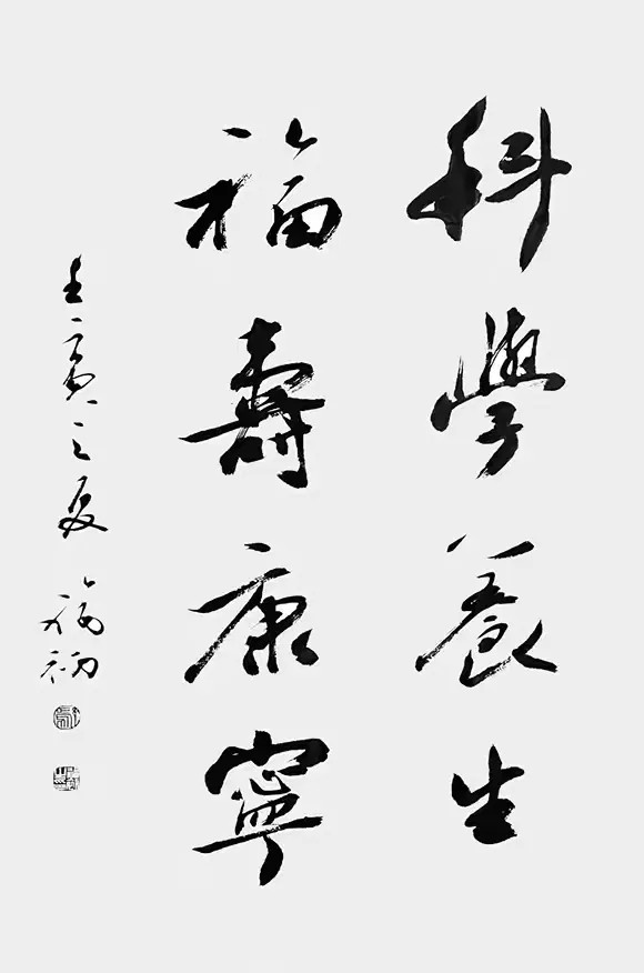 一个人的书法才能,写多少帖,临多少碑固然很重要,但天赋,与自然的共性,思维的逻辑强弱与对艺术的容纳量也绝不可缺。好的艺术家都能海纳百川,通天地人伦,晓自然万物,懂历史哲学。。。。虽不能全精,但至少要略知一二,三教九流,均能和合,上(司)下(属)大(人物)小(人物)高(人)低(层)左(邻)右(舍)都可相处。这种要求非常之苛刻,常人很难做到。而鄢福初做到了,这是一种多么了不起的人格魅力。有如此优雅人格魅力的人,其书风自然通达,其灵气当然可以渗透纸背,其骨力亦会刚柔相济,使国之安,家之和,人之吉祥。