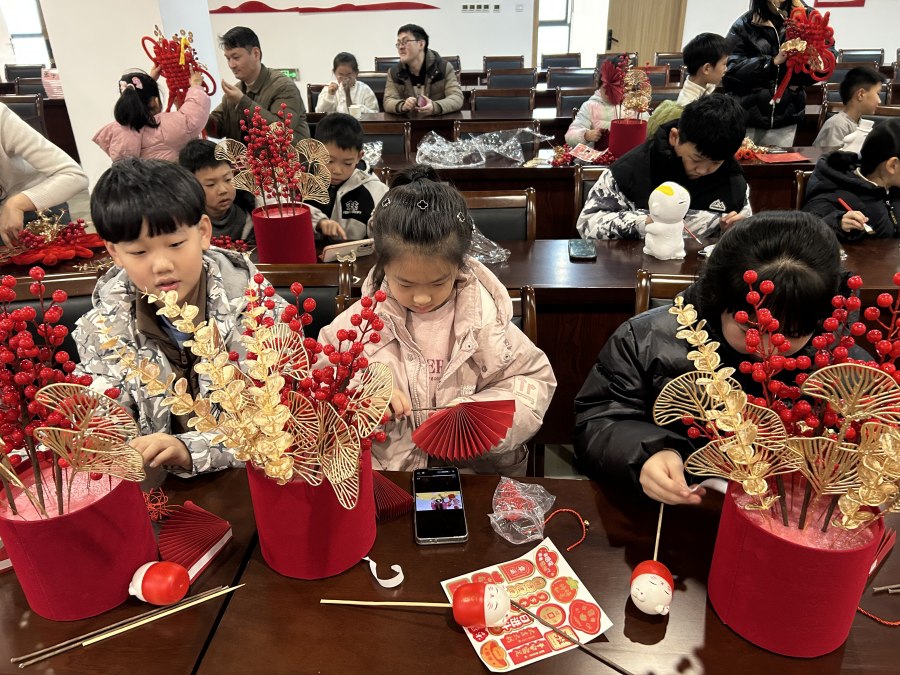 小朋友们在制作的过程中,激发了对传统文化的热爱,也营造了欢乐喜庆的文化氛围。