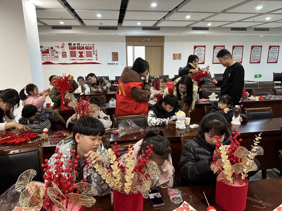 在新春佳节来临之际,为了营造浓厚的节日氛围,八千办事处开展了创意中国结手工活动。正式开始创作前,参与者们将中国结平放在操作台上,仔细观察其结构,确定插花的位置。紧接着根据中国结的大小和整体设计,将各类装饰上的细铁丝进行缠绕,形成一个小弯钩,方便插入中国结的缝隙中。
