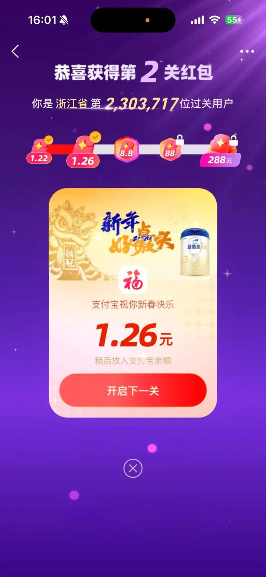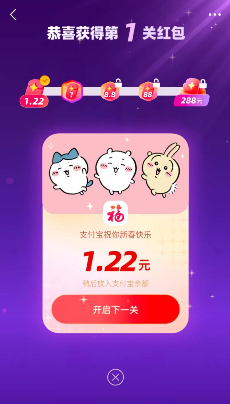 每通过一关都有红包,金额递增