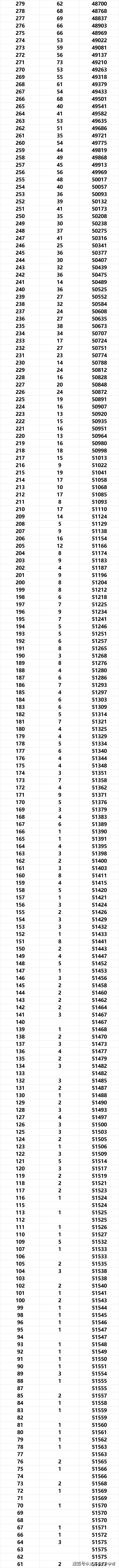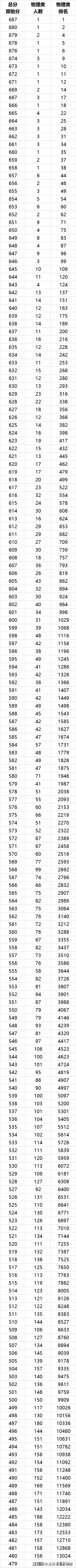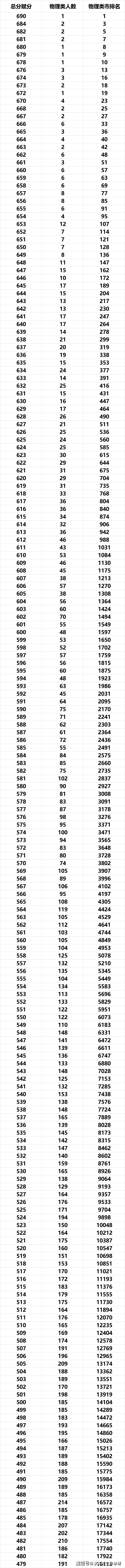 物理类一分一段表与市排名(实考分)