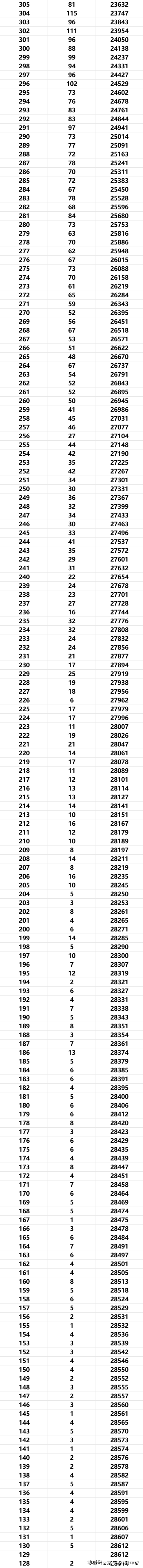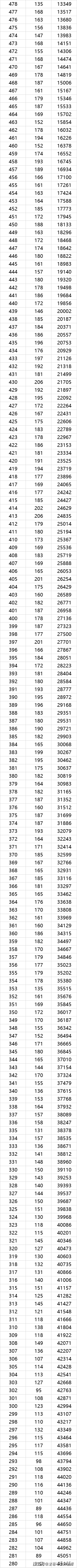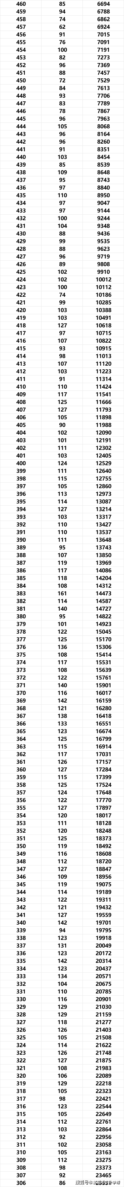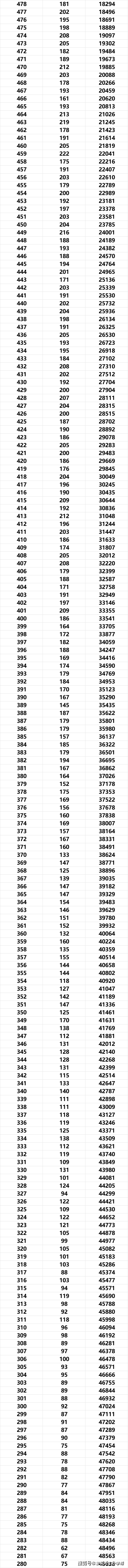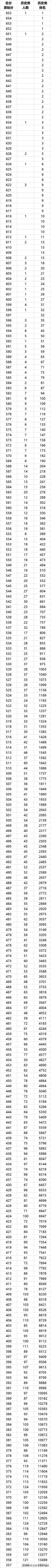 570分以上2516人,540分以上4997人,510分以上8527人,470分以上14641人,大概率一本。360分以上34315人,大概率二本。(原始分)
