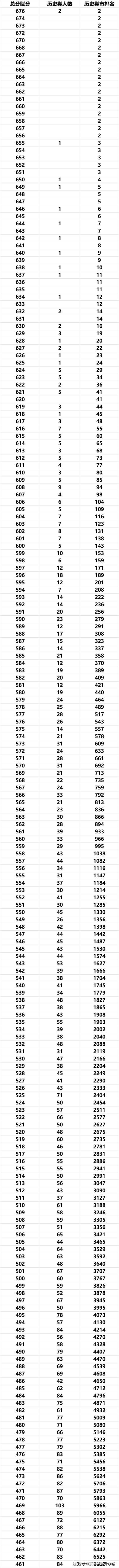 历史类一分一段表与市排名(实考分)