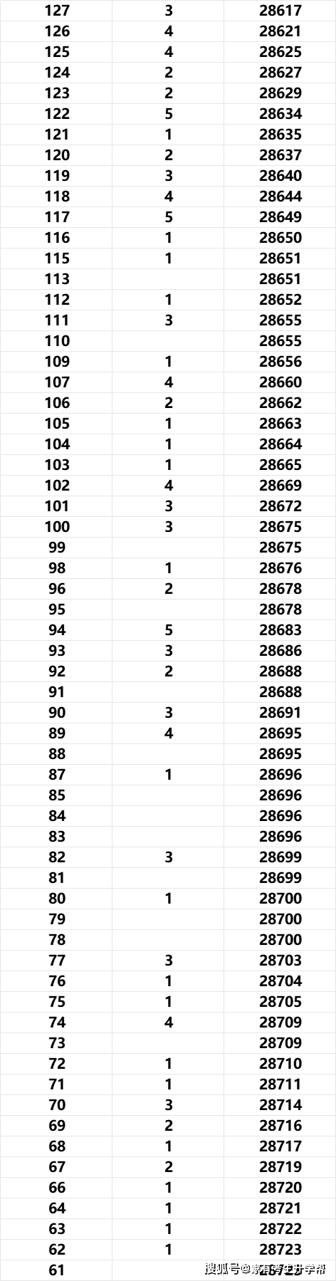 物理类赋分后一分一段与市排名