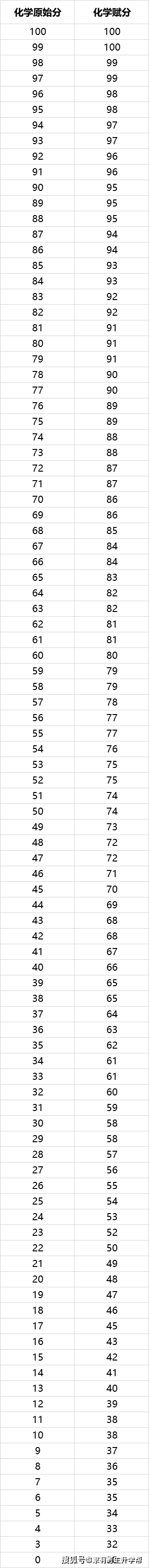 化学原始分—赋分关系