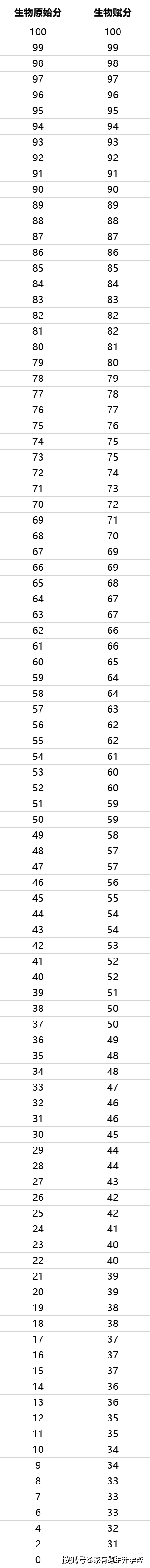 生物原始分—赋分关系