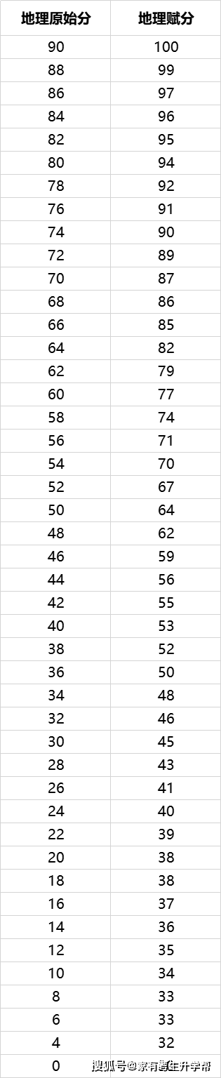 地理原始分—赋分关系