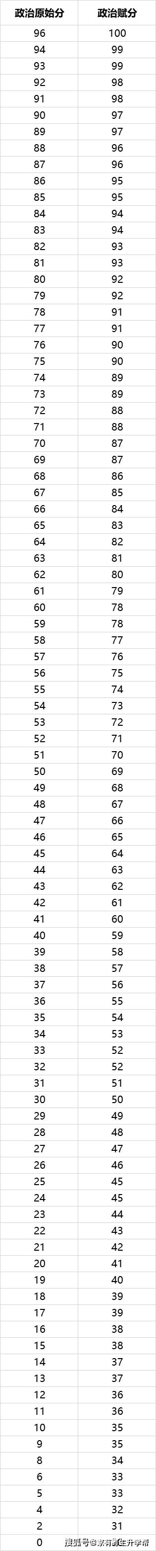 政治原始分—赋分关系