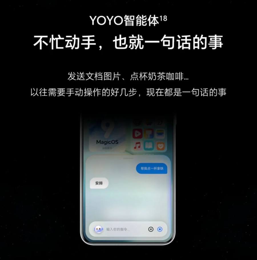 有测试表明,除了常规的一句话问天气、一句话播放音乐等功能,荣耀Magic7的YOYO智能体只支持一句话点咖啡、一句话续费管理、一句话传文件等8个复杂的一句话功能。