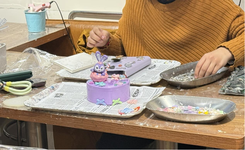 “店内的活动很丰富,做出来的东西也很精致,就是价格不算便宜。4个自制的奶油胶发卡要50多元,一条卡通皮绳大概90元,一个手机壳就超过150元,我和朋友在大众点评上看了半天,最后决定做一个首饰收纳盒,既实用又划算。”小绮告诉惊蛰研究所,“制作时,小件配饰可以随意搭配,大件则需要额外收费。DIY的过程中,店员也会耐心指导和帮忙修正,整个过程非常有趣。”
