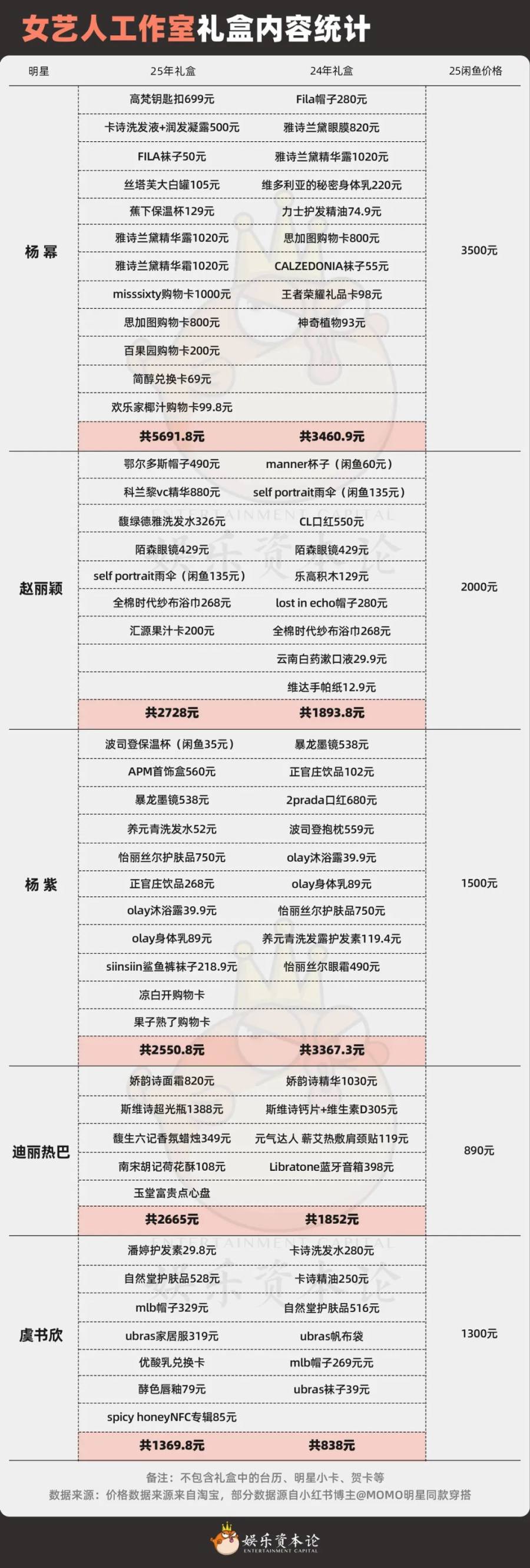 其实,丁禹兮的礼盒缩水并非个例。今年不少明星的礼盒都出现了不同程度的“降级”。曾经动辄几千上万的礼盒,如今却变得“亲民”了许多。这背后,或许正是娱乐圈“消费降级”的一个缩影。