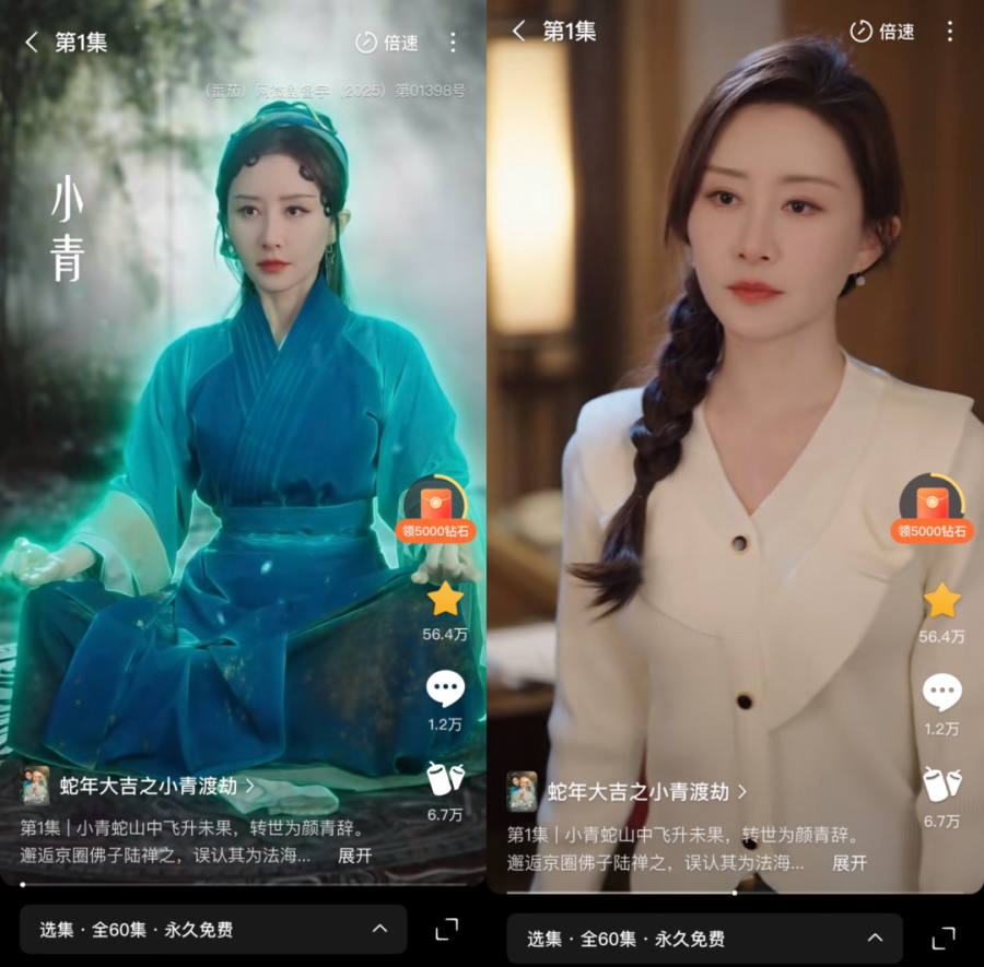 “精品化”,无疑是这个春节档微短剧最明显的体感。一方面,悬浮的爽点不再是短剧唯一的标签,立体的人设、丰满的细节、更具时代价值的表达成为今年春节档微短剧的共性;同时,从镜头表达到后期特效上的升级,不仅带来高级的视觉享受,也成为推动故事、表述情感的关键;实力派演员的加盟,更是提升了作品的整体质感。