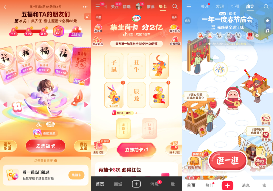实测:支付宝、抖音、小红书哪个平台春节集福更赚钱?