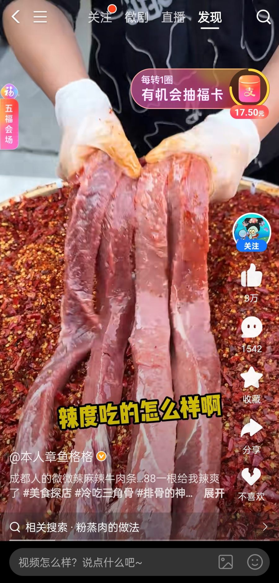 每天刚点进支付宝视频的时候,每转1圈(看视频10秒)就有机会抽取一次福卡,而抽卡几次之后就会变成浏览两分钟视频才能抽一次福卡,这样的设定可以较好地留存那些为了福卡而点进来的用户,因为毕竟等待的时间也不算短,很多本来为了抽福卡而来的用户会在不经意期间刷起视频来。