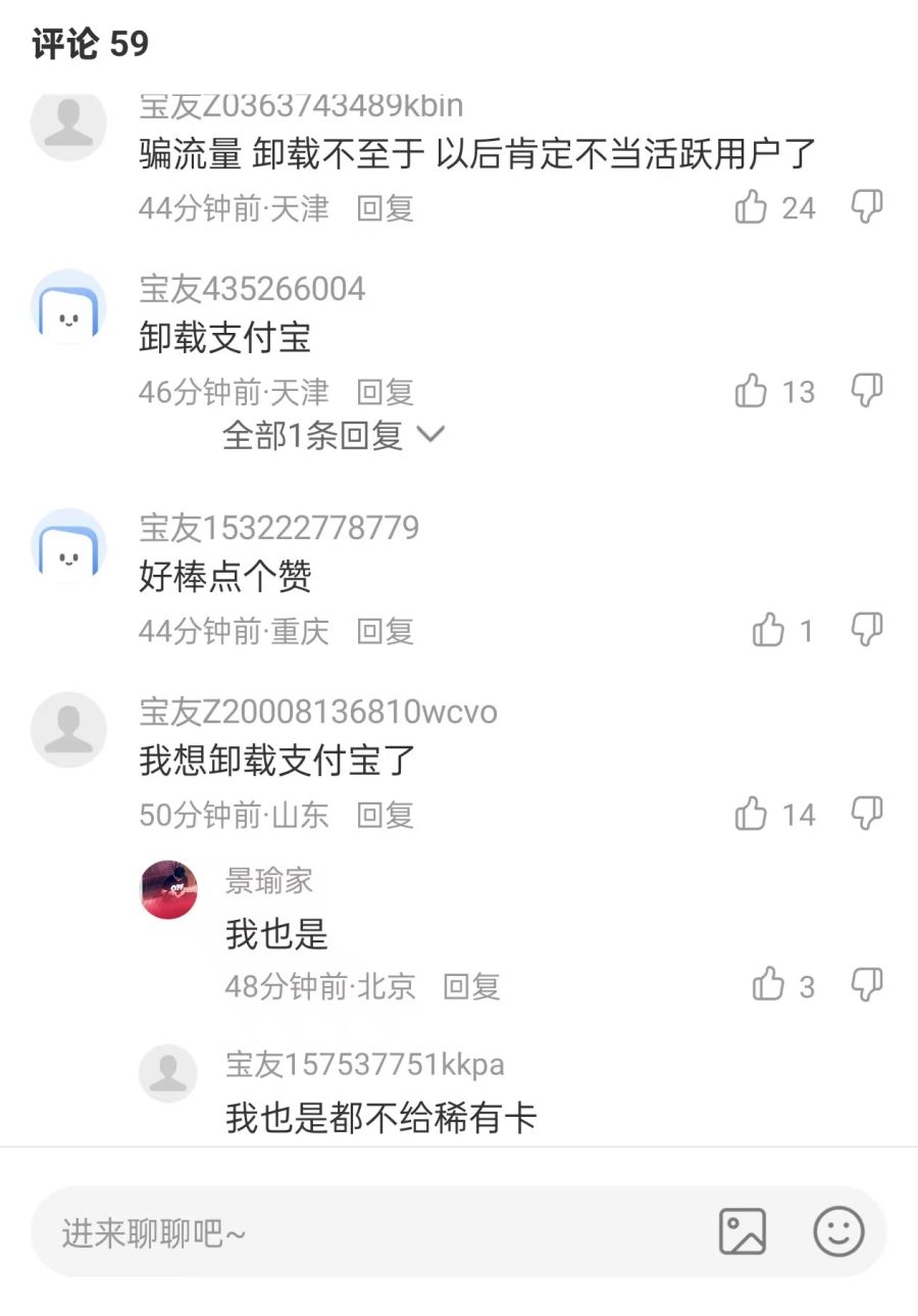 但是,像这样被快手和抖音玩剩下的方法,实在是没看到多少成效,反而有些适得其反的感觉。随意刷几个视频,就很可能看到有某条视频的评论区都是像下面这样吐槽集五福玩法太坑的评论,甚至有不少用户表示要卸载支付宝。