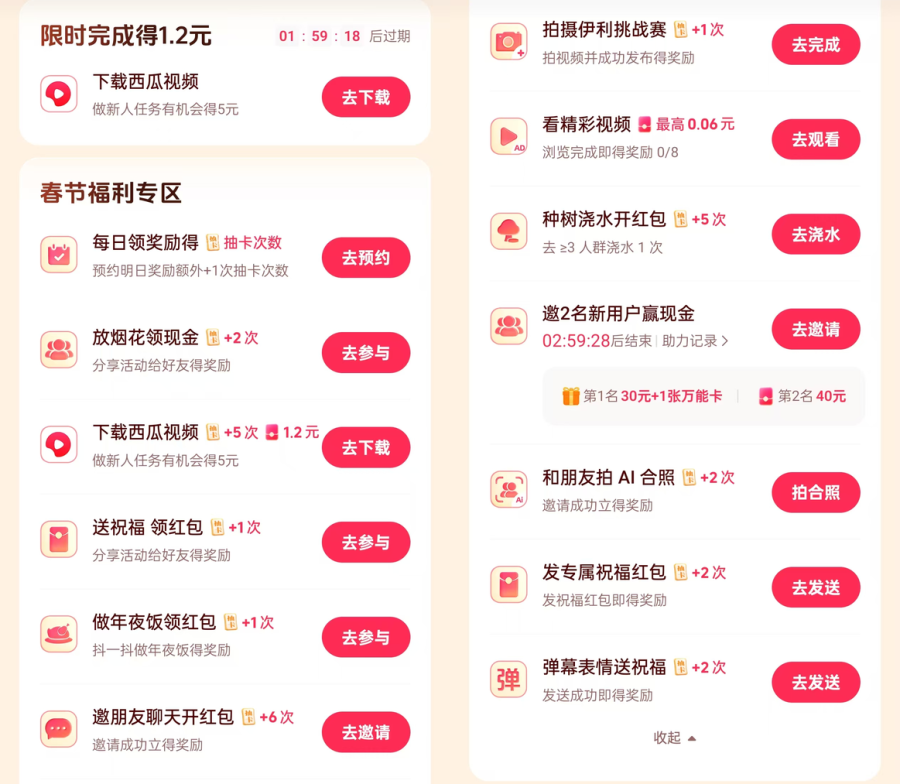 第二部分:抖音集福带字节全家桶,小红书集福有实物礼盒