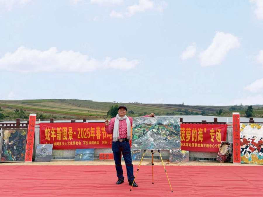 1月31日大年初三,2025新春冯才权写生徐闻绘画分享会,亮相徐闻“菠萝的海”主题中心公园,拉开了冯才权以“菠萝的海”的人文风情、田园景观为写生创作作品的序幕。为两千余名游客送上了蛇年春节,喜庆祥和的文化盛宴。