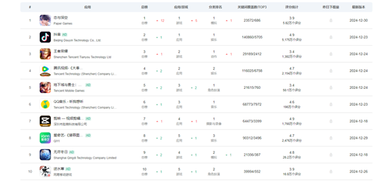 12月31日,《恋与深空》在2024年的最后一天完成了它的第四次登顶,不出所料地超越抖音、《王者荣耀》等一批实力强劲的老牌选手,成为ISO畅销榜第一。