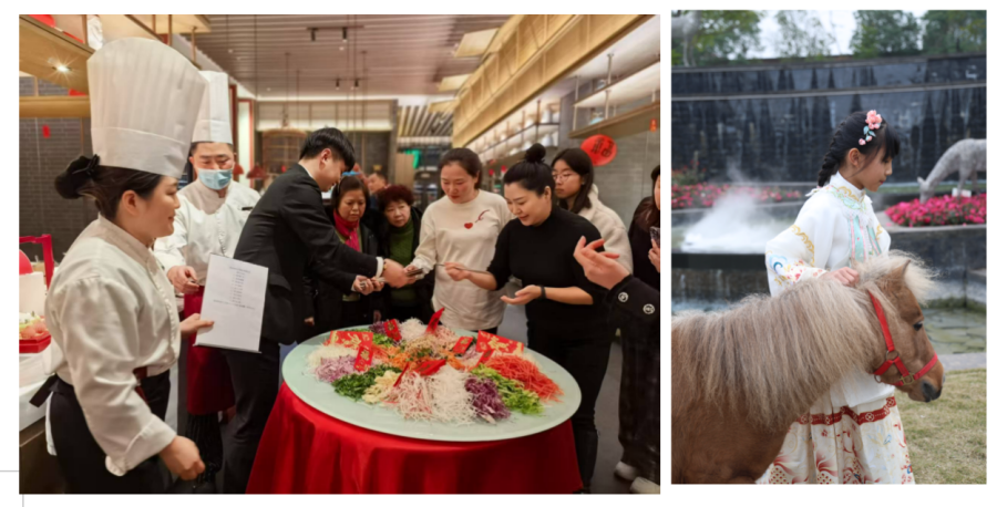 作为今年春晚分会场之一的重庆,融创施柏阁酒店餐厅则围绕粤式年菜经典“捞生”盆菜,打造出寓意步步高升的美食体验,同时还特别引入马术项目,深受亲子家庭欢迎,这些活动赋予宾客浓浓的节日仪式感。