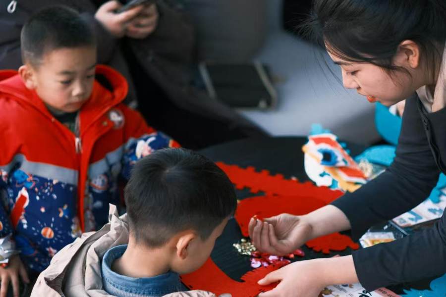 青岛融创施柏阁酒店在大年初一举办舞龙醒狮拜年表演,并安排了沙画、泥塑、香包制作等年俗体验活动,为宾客送上新春祝福。