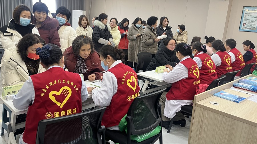 讲座结束后,便是备受居民期待的现场义诊环节。瑞康医院的医护人员为居民们提供了免费的身体检查,包括血压测量、血糖检测、心电图、五官科、康复理疗、中医科等项目。同时,针对居民们各自的身体状况,医护人员给予了专业的健康建议和个性化的治疗方案。