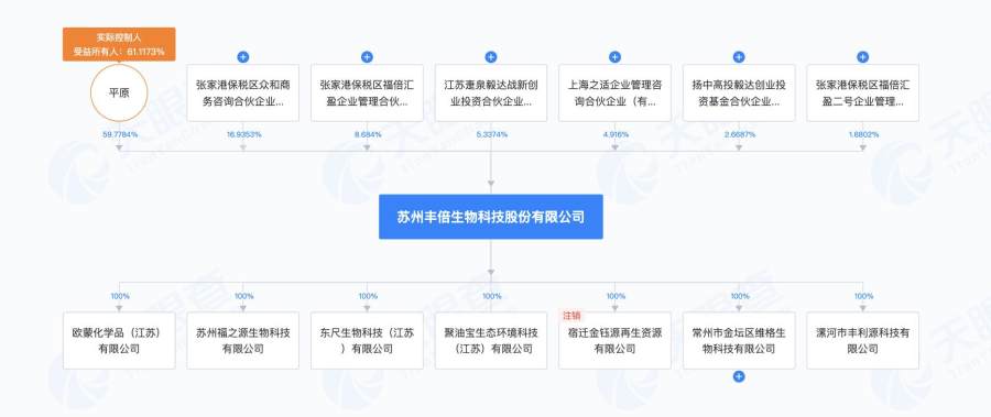 天眼查App信息显示,丰倍生物成立于2014年7月,位于江苏省苏州市。目前,该公司的注册资本约1.08亿元,法定代表人为平原,主要股东包括平原、张家港保税区众和商务咨询合伙企业(有限合伙)、毅达资本等。