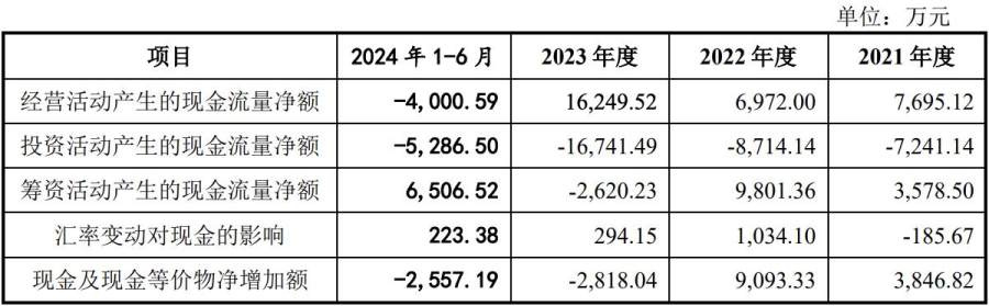 2023年度,丰倍生物的现金及现金等价物亦减少2818.04万元。丰倍生物在招股书中表示,该公司2021年至2023年经营活动现金流量情况良好。而2024年上半年经营活动现金流量净额为负,主要是经营性应收项目余额增长所致。