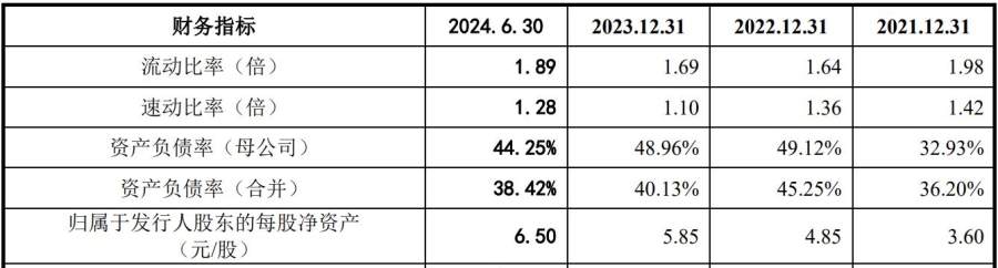 特别说明的是,丰倍生物的负债规模高企。2021年、2022年、2023年度和2024年上半年,该公司的资产负债率(母公司)分别为32.93%、49.12%、48.96%和442.5%,合并资产负债率分别为36.20%、45.25%、40.13%和38.42%,整体呈上升态势。