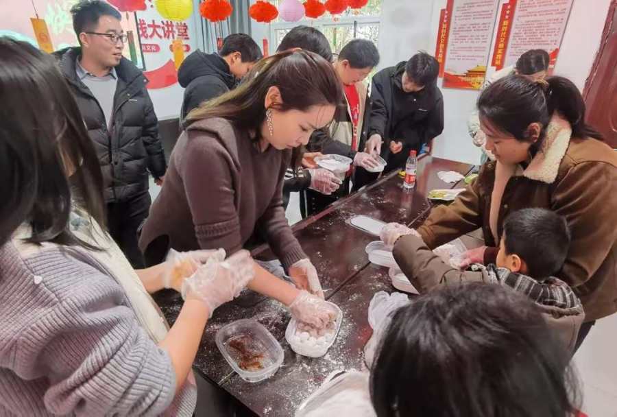 活动现场一片热闹景象,大家看着一张张悬挂的谜语,互相探讨,共同体验猜灯谜带来的乐趣。而后,社区工作人员与大家一起动手做起了汤圆。搓汤圆、包馅料、捏造型……随着一双双巧手的搓转,一个个汤圆呈现在眼前。活动结束时,做好的汤圆被分发给在场的居民朋友,现场其乐融融,洋溢着节日的喜庆和温馨。
