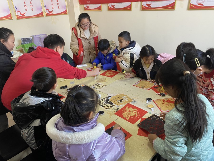 非遗体验区传来阵阵墨香,福字拓印活动吸引众多孩子们前来参与。社工与志愿者现场示范传统拓印技艺,孩子们在宣纸上覆好雕版,用沾着鎏金的拓包细心捶打。随着"福""春"等吉祥字样跃然纸上,家长王先生感慨:"孩子不仅学会了传统技艺,更感受到汉字承载的美好祝愿,这样的文化传承生动又温暖。"