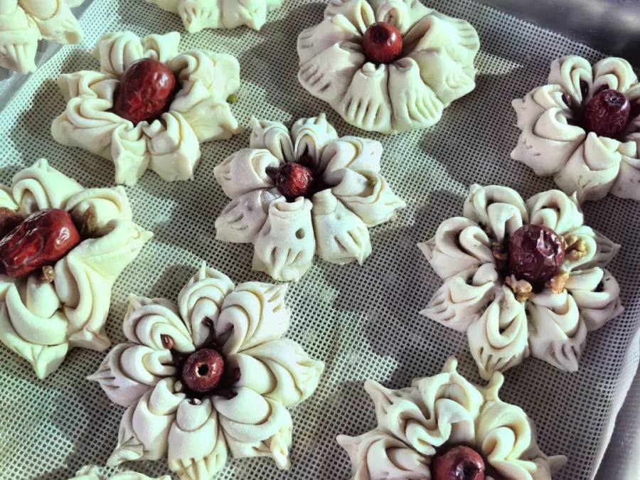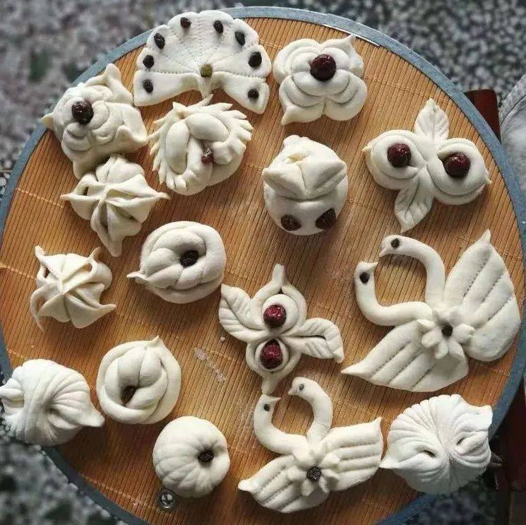 道口的花馍造型很多,大致可以分为动物和农作物两种。动物花馍主要有兔子、青蛙、刺猬和蛇等形状,农作物花馍是棉花垛和谷垛花馍。做青蛙和蛇形花馍时都要先把面剂子搓成长条。一端略粗,另一端略细,长条面一盘,蛇形塑出来。略粗的一端做蛇首,剪刀尖轻轻一剪,嘴就出来了。剪一点儿红枣放在蛇嘴里,按上黑豆或绿豆做眼睛,蛇立刻灵动起来。再揪一点儿面做个小面剂,大拇指一按,就是蛇背上托的大“元宝”,显得可爱又喜庆。做兔子和青蛙花馍也大抵如此。在“刺猬”肚子里包上一枚大红枣,长圆形的身上剪出的根根“硬刺”枝揸着,尖尖的小翘嘴巴上叼着一点儿红枣,凹陷下去的双颊上一双黑黑的豆眼睛,样子可爱又乖巧。农作物花馍的面剂子比做普通馒头的面剂子略大些,依然揉成馒头的形状,内里包上一枚大枣,外面搭上用剪子剪四下形成的棉花瓣,或用梳子压成谷穗形状的长条面,上面用一锭“元宝”压着顶,就是棉花垛和谷垛了。春节蒸年馍时的地锅又被点燃,劈柴在锅底“噼噼啪啪”地燃烧着。孩子们围着锅台欢呼雀跃,看着青蛙、兔子、蛇、刺猬和谷垛花垛一一被摆进屉笼里,又眼巴巴地等着出笼。在等待馍熟的三十来分钟的时间里,孩子们会一遍遍追问母亲“熟了没有?”母亲一遍遍地回答着:“再等一会儿、等会儿”、“快了、快了”。笼盖刚一掀开,香甜的馍香便随蒸汽四散,在孩子们的望眼欲穿中,一群白白胖胖的动物个个叼着一点儿红枣、齐齐睁着一双黑黑的眼睛已在笼屉上了。围拢在锅台前的孩子便欢天喜地争着认领自己喜欢的那只“动物”。不等热气散尽,便要求母亲掀出自己的最爱,随后用手绢垫着,小心地吹着气,捧在手上端详着,亲吻着,出去和小伙伴互相比对着,讨论讨论谁家的花馍蒸得最像相、最可爱,然后才怀着不舍,小口小口地吃掉。孔子说,《诗经》有很好的教育功能,可以让小朋友认识里面的花鸟鱼虫。在我看来,花馍也是一样,小孩子不懂得民以食为天,喜爱动物,才是他们的天性。这些动物花馍,给小孩子带来莫大的喜悦。02/