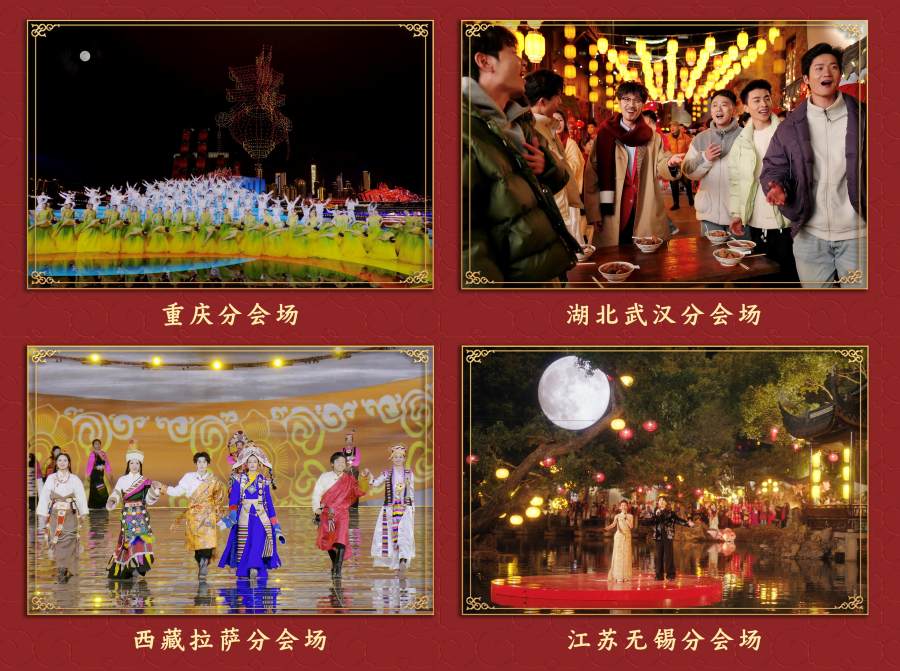九州联欢,共奏和鸣。重庆分会场以极富地方特色的重庆言子开启《上元欢渝夜》,舞龙舞狮、鲤鱼灯、川剧等非遗表演轮番登场。武汉分会场《汉阳门花园》唱出游子对故乡的眷恋和深情,尽显元宵节的烟火气与幸福感。拉萨分会场上演了一场世界屋脊服装大秀《衣脉相承》,藏族盛装带来雪域高原的民族风情。无锡分会场在江南水乡的缠绵意境中,以戏腔和美声对唱《相思》,表达出中国人特有的东方浪漫。网友纷纷表示“分会场继续上大分!没看够”“各有特色,很用心”。
