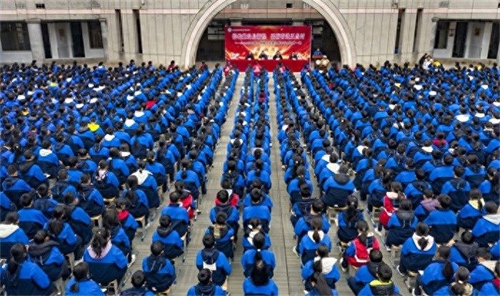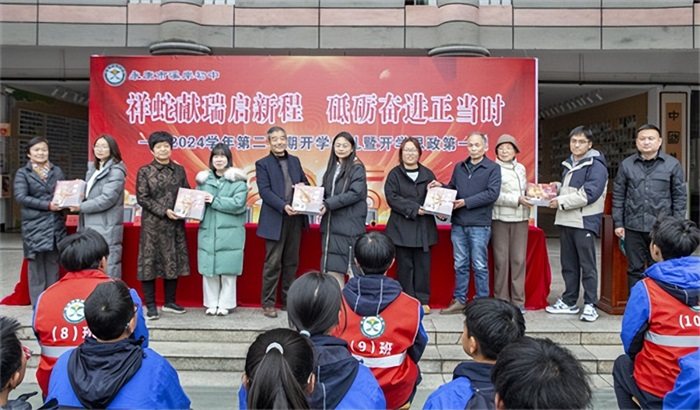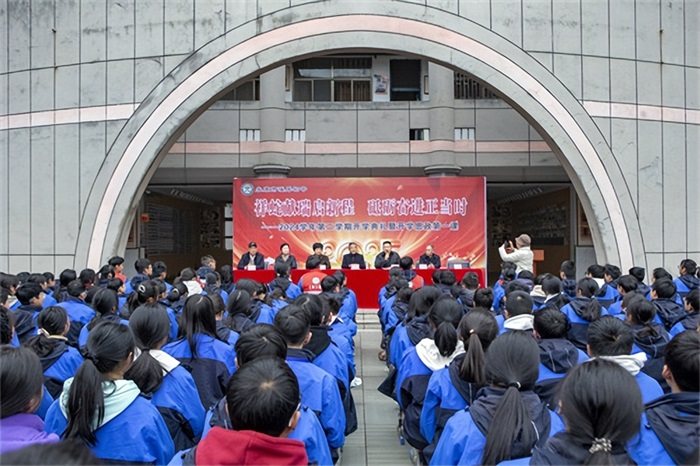 2025年2月14日下午,溪岸初中1700多名师生集中在教学楼前广场,隆重举行开学思政第一课活动。