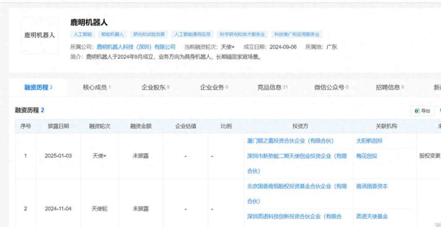 去年上半年,追觅人形机器人业务负责人、创新机器人研究院负责人喻超选择离职,后创办的鹿明机器人公司。天眼查APP显示:现在也已经获得了商汤国香资本等两轮的天使投资。
