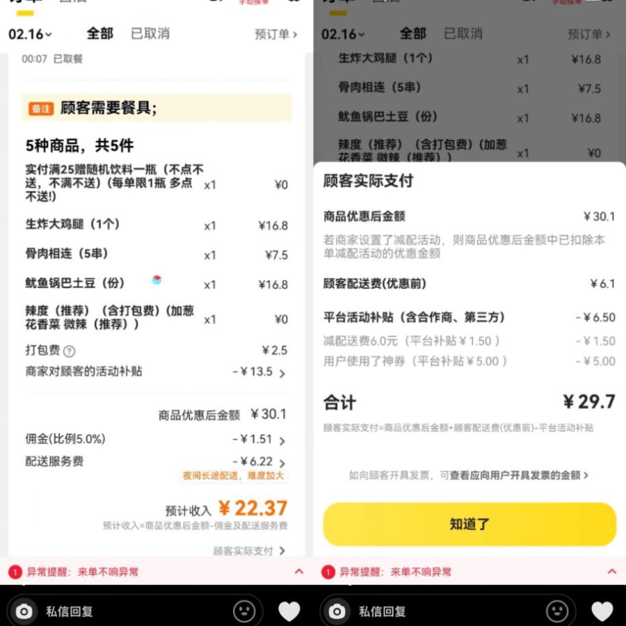 商家提供的美团外卖实际收入